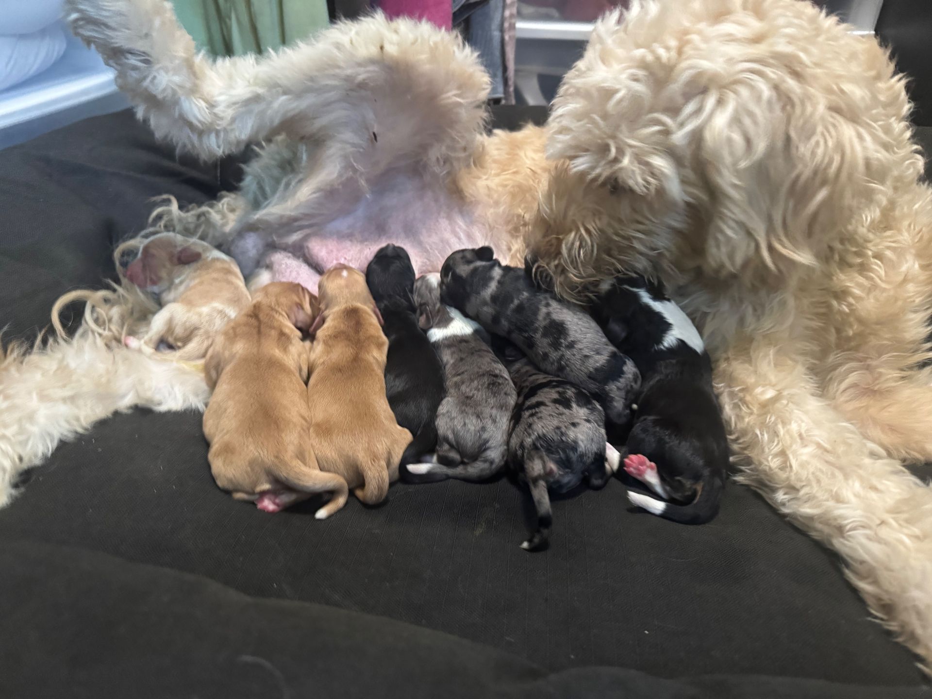 At Central Coast Double Doodles, we raise exceptional animals in a loving and caring environment. Dedicated to following a responsible breeding program, as well as implementing Early Neurological Stimulation to our breeding program makes us an excellent choice for your next choice when it comes to adding a canine to your family. The Grand Sire of these pups has two trick titles with AKC.